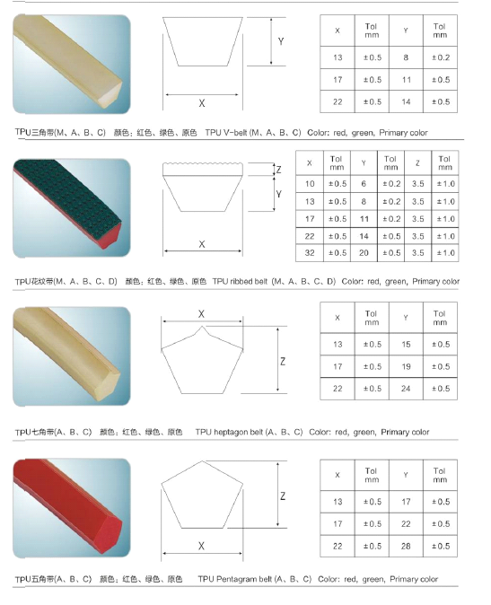 Oferecemos uma linha completa de cintos de poliuretano para uso em máquinas industriais de transmissão. E no transporte de produtos que variam de máquina de transporte, máquina transportadora a vidro e ladrilhos. As correias redondas estão disponíveis com superfícies lisas e ásperas e reforçadas com poliéster, nylon ou fibras. Também pode soldar o cinto para o O-ring. Forneça as ferramentas e acessórios de conexão para cintos de poliuretano, incluem grampo, ferro elétrico e faca, métodos de conexão é soldagem a quente, sobreposição de soldagem.